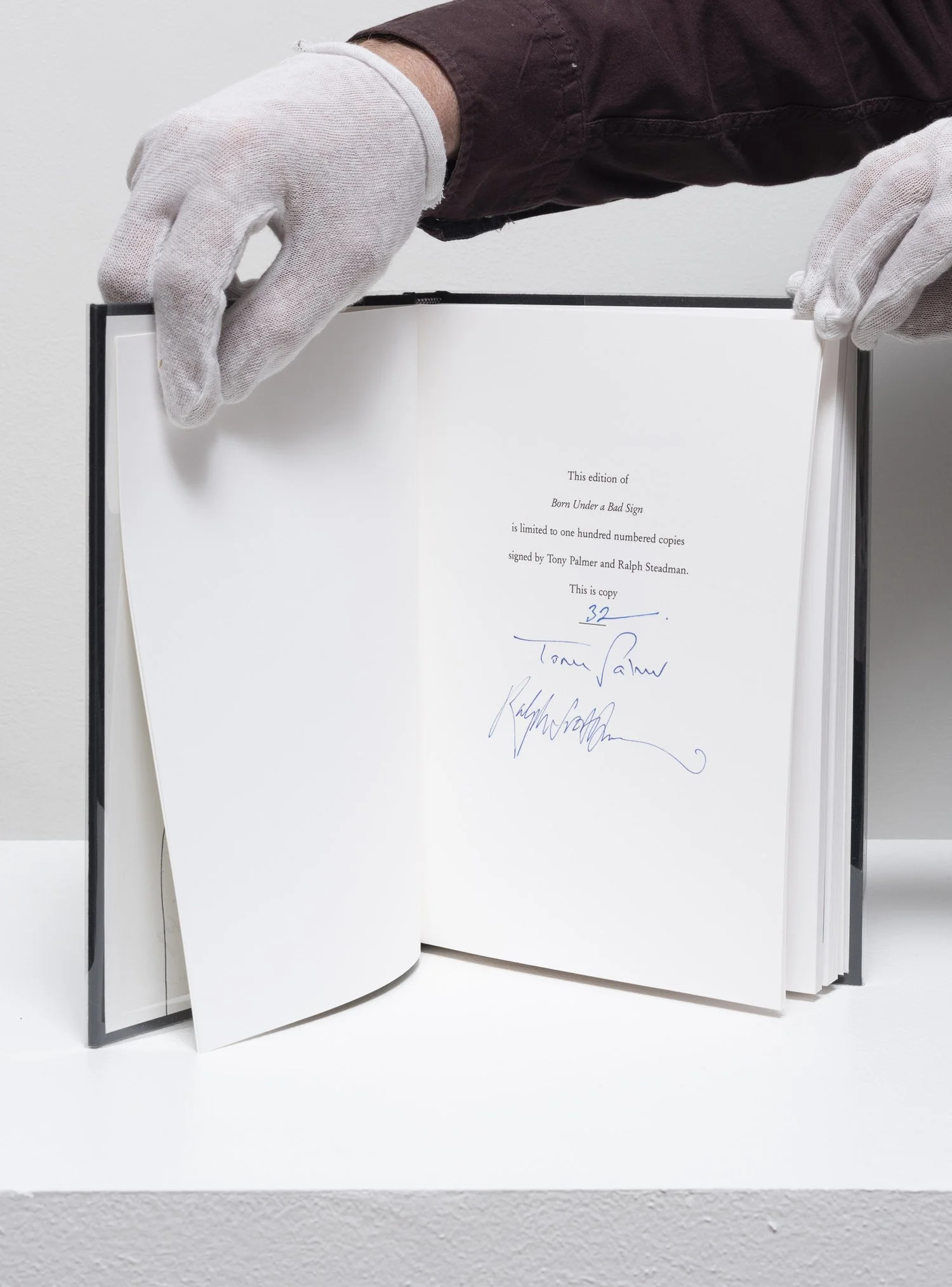 A new edition of Palmer's 1970 book about the rock music scene in the late 1960s. That edition, like this, was illustrated by Ralph Steadman with a dozen portraits of musicians, each incorporating a photographic element. This is one of 100 copies of the new edition signed by Palmer and Steadman.